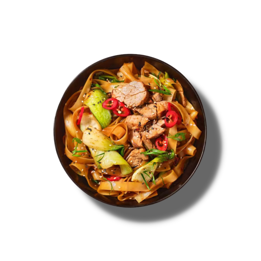 XL rice noodles with the protien of your choice, pak choi, secret sauce, Asian herbs and fresh chili.